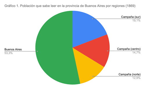 No obstante el desenlace de la experiencia sarmientina, su ejemplo sentó un precedente que tuvo una impronta fundamental para la configuración del sistema bibliotecario argentino posterior al asignar un rol central a la sociedad civil en la creación y mantenimiento de estos centros de lectura. Su modelo fue también replicado contemporáneamente por los gobiernos provinciales. Entre 1871 y 1874, Catamarca, Santa Fe, Entre Ríos, Mendoza, Corrientes y Buenos Aires aprobaron sus propias leyes análogas a la nacional (Lucero, 1910). Para 1870, con sus 521.538 habitantes, Buenos Aires era una de las regiones más pobladas del país (27% del total), mostrando ya un desequilibrio demográfico entre la capital (198.129 hab.) y el resto de la provincia (323.409 hab.) (Massé, 2013). Es importante precisar que durante los años considerados se produjo una transformación radical del territorio provincial a partir de la federalización de Buenos Aires y de la expansión de la frontera. En el período en cuestión, por lo tanto, la fisonomía de la provincia difería de la actual y la ocupación efectiva del Estado argentino se concentraba principalmente en su zona norte. Los centros urbanos de más de 2.000 habitantes se aglutinaban en torno a la capital y las densidades iban disminuyendo de manera radial hacia el medio del territorio; al sur del Salado, los nodos habitados eran fortines con escasa población, como Tandil y Azul. De acuerdo con Santiago Linares y Guillermo Velázquez (2013), la red urbana era discontinua y se caracterizaba por las grandes distancias demográficas.