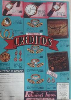 Con una combinación de suscripciones y publicidades UDA financiaba su edición. La producción de publicidad fue contratada con la empresa “LATINO PUBLICITARIA” con una comisión del 35 % y 50 % por avisos en Capital Federal e interior respectivamente. Destinada a un colectivo lector mayormente femenino, las publicidades se concentraron en artículos de belleza facial que interpelaban desde la distinción y la exclusividad y en joyas, pieles y artículos del hogar -cocinas, heladeras, lavarropas y televisores- ofrecidos a diez o doce mensualidades mediante “créditos liberales”. Según UDA, el estatuto del docente había llevado el sueldo básico del maestro a mil pesos,[44] mientras que una heladera costaba diez mil pesos, por lo que solo el crédito la hacía accesible. La publicidad estaba en consonancia con el ascenso de la venta en cuotas de bienes duraderos que en la Capital Federal pasó del 17% en 1950 al 33% en 1955 (Belini, 2009, p. 138). Otros consumos promocionados fueron el turismo nacional a Córdoba, Mendoza y Bariloche, con estadías semanales a un costo aproximado de mil pesos y un “crucero cultural a Europa y Medio Oriente”, organizado por la empresa “Turismo Trio”, de 91 días de duración a un costo de $ 25.000 m/n, similar a las excursiones que para la misma época promocionaba la revista católica Criterio. Las publicidades interpelaban a los destinatarios como personas “cultas”, atributo propio de la condición de profesional.
