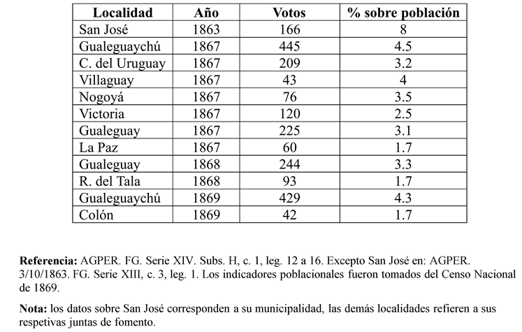Al examinar las listas de votantes, se acrecientan las conjeturas en relación con las características que tuvo la participación electoral en Gualeguaychú. En ambas elecciones, identificamos que los integrantes de la mesa escrutadora no emitieron su voto, tampoco los electos y la participación de los electores fue heterogénea. Si cruzamos esta información con el censo es posible verificar de dónde provinieron y qué tipo de ocupaciones tuvieron tales sufragantes.