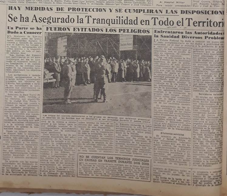 El 18 de junio ambos periódicos colocan en su primera plana una mención a la “nueva” situación instaurada en el país: para La Nación “Ha renacido la tranquilidad en todo el país”, mientras que La Razón destaca que “El país vuelve a la normalidad”.[20] Los días siguientes transcurrieron entre las noticias de las bombas que no explotaron siendo desactivadas por tropas especiales de la Fuerza Aérea Argentina bajo la atenta mirada de los curiosos ciudadanos que, al parecer y sin importarles demasiado la sanción del estado de sitio, se agrupaban para observar los peligrosos trabajos de remoción y comentar lo sucedido en cada esquina de Buenos Aires.