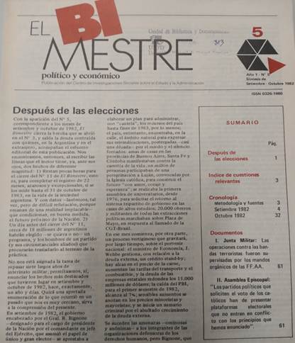 Fuente: El Bimestre Político y Económico, CISEA, , N° 1, marzo-abril de 1982, p. 1.