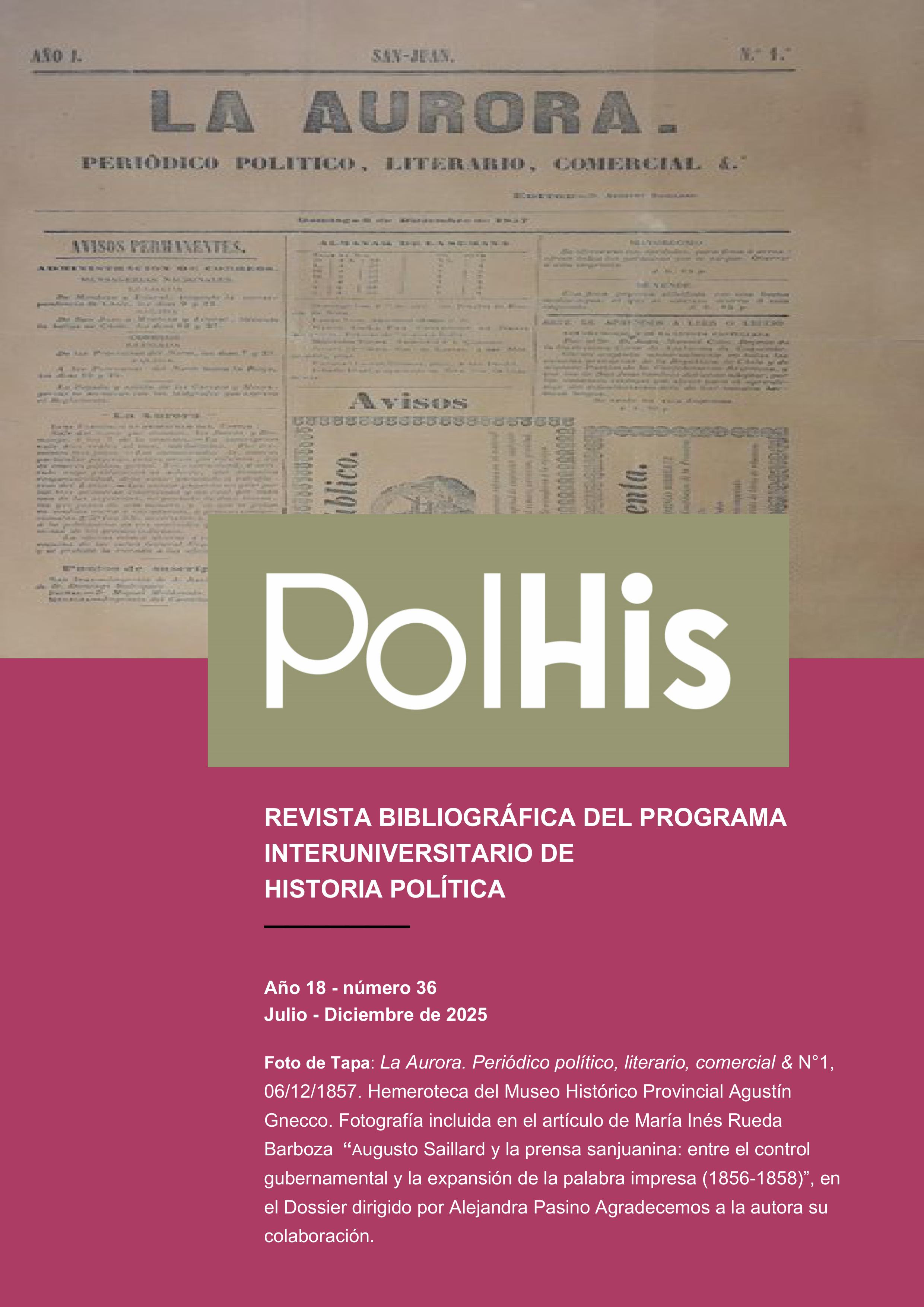 Iriart, G. (2025). Los resortes del poder local: el rol los municipios mendocinos bajo la lupa (1914-1934). PolHis. Revista Bibliográfica Del Programa Interuniversitario De Historia Política, (36), 105–134. Recuperado a partir de https://www.polhis.com.ar/index.php/polhis/article/view/573